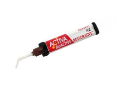 Resina composita a polimerizzazione duale, da utilizzarsi per restauri di cavità di I, II, III e V classe e per bulk filling fino a 4 mm., con una matrice di resina idrofila e bioattiva che tollera l'umidità e reagisce continuamente ai cambiamenti del pH nel cavo orale per rilasciare e assumere ioni calcio, fosfato e fluoruro. ACTIVA-RESTORATIVE possiede la resistenza, l'estetica e le migliori proprietà fisiche dei compositi e, stimolando il naturale processo di remineralizzazione, garantisce un sigillo contro le microinfiltrazioni. Ricambio siringa 5mL/8gr. col. bianco opaco + 20 puntali automix.