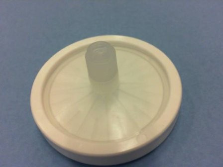Filtro batteriologico di forma cir colare e di colore bianco, posizionato sulla parte frontale della mac china.