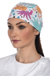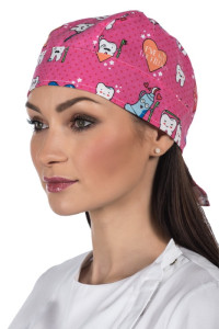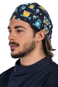 Bandana a fantasia CapCap. Taglia unica regolabile con laccetti posteriori. Composizione: 50% cotone e 50% poliestere. Confezione da 1pz. Se desideri personalizzare il prodotto contatta il tuo agente, chiama il numero verde 800 751003 o scrivi a teleselling@dentaltrey. it