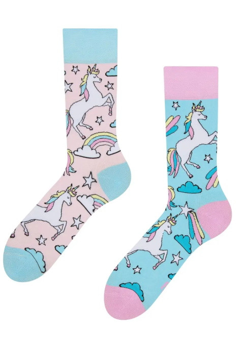 Calzini unisex con 9 simpatiche fantasie per aggiungere un tocco di allegria alla tua giornata lavorativa. Design innovativo e originale , vestibilità comoda, con piede destro e sinistro differenti tra loro : calzini spaiati, ma perfetti in coppia. Materiale: 70% cotone, 28%poliammide, 2% elastan. Cura: lavare a 40°C max. Asciugatura in asciugatrice, lavaggio a secco o con candeggi na sono sconsigliati. Confezione da 1 paio fantasia unicorno mis. 39-42.