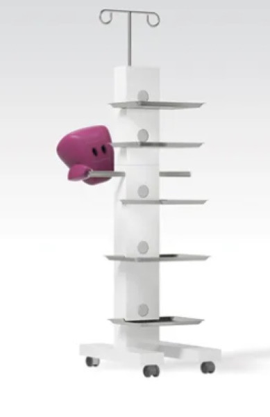 Carrello porta apparecchiature Easy Tray, in acciaio inox, elettrificato, comprensivo di 5 tray 465x315x 20 mm e asta porta flebo.