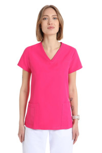 La casacca POWER modello donna ha una linea aderente, collo a V, cucitura orizzontale sopra il petto, due tasche a doppia cucitura e spacchetti laterali. In microfibra (100% poliestere), completamente no stiro, lavabile in candeggina anti-batterica, 9 colori brillanti in tinta unita. Lavabile a 90°. Casacca da donna blu notte, manica corta taglia XXL. Se desideri personalizzare il prodotto contatta il tuo agente, chiama il numero verde 800 751003 o scrivi a teleselling@dentaltrey. it.