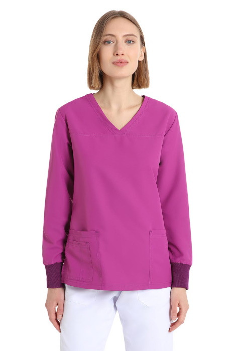 La casacca POWER modello donna ha una linea aderente, collo a V, cucitura orizzontale sopra il petto, due tasche a doppia cucitura e spacchetti laterali. Manica lunga con polsino in maglia, morbido, resistente e indemagliabile, in tinta con la casacca. In microfibra (100%poliestere), completamente no stiro , in colori brillanti tinta unita. Lavabile in candeggina, anti-batterica, lavabile a 90°. Casacca da donna, manica lunga, viola, taglia L. Se desideri personalizzare il prodotto contatta il tuo agente, chiama il numero verde 800 751003 o scrivi a teleselling@dentaltrey. it.