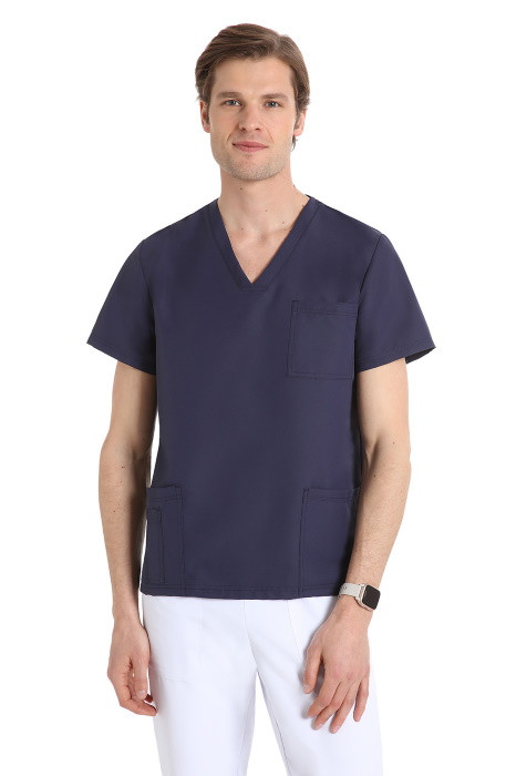 La casacca SMART ha una linea morbida, diritta con spacchetti laterali, collo a V, un taschino e due tasche a doppia cucitura. In microfibra (100% poliestere), completamente no stiro, lavabile in candeggina, anti-batterica, 9 colori brillanti in tinta unita. Lavabile a 90°. Casacca unisex blu notte manica corta taglia XS. Se desideri personalizzare il prodotto contatta il tuo agente, chiama il numero verde 800 751003 o scrivi a teleselling@dentaltrey. it.