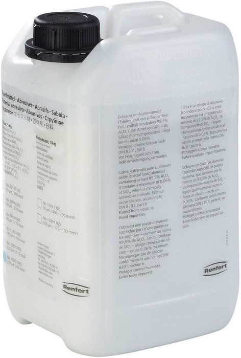 La qualita' elevata e l'estrema pur ezza del prodotto previene l'usu prematura delle sabbiatrici. L'ossi do di alluminio (Al2O3) e' puro 99,75%. Meno del 0,06% di impurita'da SiO2. Fortemente abrasivo -te rimozione degli ossidi del rives timento (leghe vili). 250 ? - bi o - tanica da 5 Kg. tanica da 5 Kg.