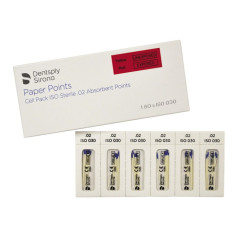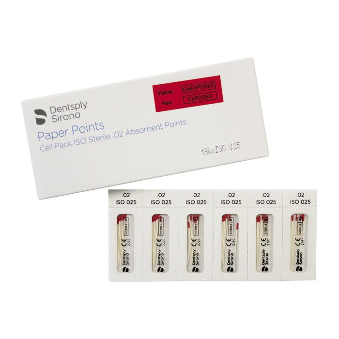 Punte di carta sterili colorate per asciugare completamente il canale "radicolare; resistenti e semplic ida posizionare. Lunghezza 27 mm."conicità 2%; ISO 25. Confezione i nblister sterile da 180pz con termi nale colorato rosso.