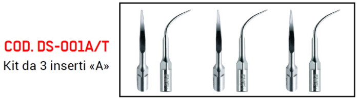 Punta universale per l'ablazione sopragengivale in tutti i quadranti. Ideale da usare dopo la rimozione di superfici estese e spesse di tartaro indurito. La punta A viene utilizzata tangenzialmente al dente come uno scaler. La confezione contiene n.3 Punte A + 3 chiavette dinamometriche grey.