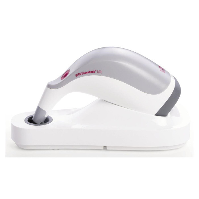 Nuova versione per la determinazione digitale del colore. Il dispositivo si distingue per l'alta precisione e la bassa complessità: l'esatta determinazione del colore è possibile semplicemente premendo un pulsante. La tecnologia basata su spettrofotometro ad alta precisione determina esattamente il colore dei denti indipendentemente dalle condizioni di luce ambientali. CARAT TERISTICHE E DATI TECNICI: Spettro"fotometro, intervallo di misura 400700 nm; Visualizzazione di tutti colori dei denti naturali nei collaudati standard cromatici VITA "classic A1-D4 e VITA SYSTEM 3D-MAS -TER; Lunghezza / Larghezza/ Altezz : 20,5 cm / 8,5 cm / 10,5 cm - Peso Circa 385 g-Batterie: 2 batterie AA (1,5 V) incluse.