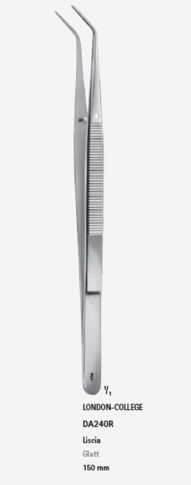 Pinzetta medicazione LONDON-COLLEGE liscia. Lunghezza 150mm.