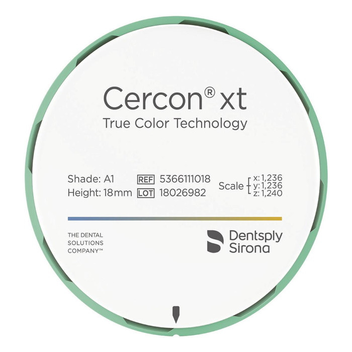 Zirconia extra traslucida. I grezzi vuoti sono costituiti da diversi strati di tonalità, che stabiliscono un gradiente di colore naturale ideale nel restauro sinterizzato per un'estetica ottimale nel restauro dentale. Eccellente corrispondenza cromatica per tutte le 16 tonalità VITA e BL2. Indicazioni nei segmenti anteriore e posteriori : Cercon XT ML è indicato per tutti i restauri in ceramica per posizioni anteriori e posteriori: Corone, ponti a 3 unità (fino al 2° premolare). Diametro 98 mm. Confezione da 1 disco.