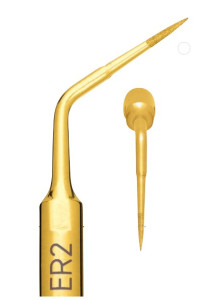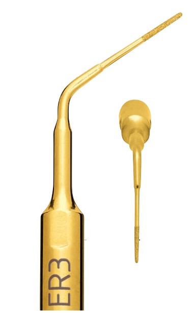 Inserto per trattamenti endodontici , dotato di punta angolata, diametro 0,6mm, estensione del lavoro fino a 10mm, punta diamantata nella parte finale (ultimi 5mm). Indicato per trattamento di entrate canalari calcificate, rimozione di parti di radici e strumenti fratturati. Completo di chiave K10.