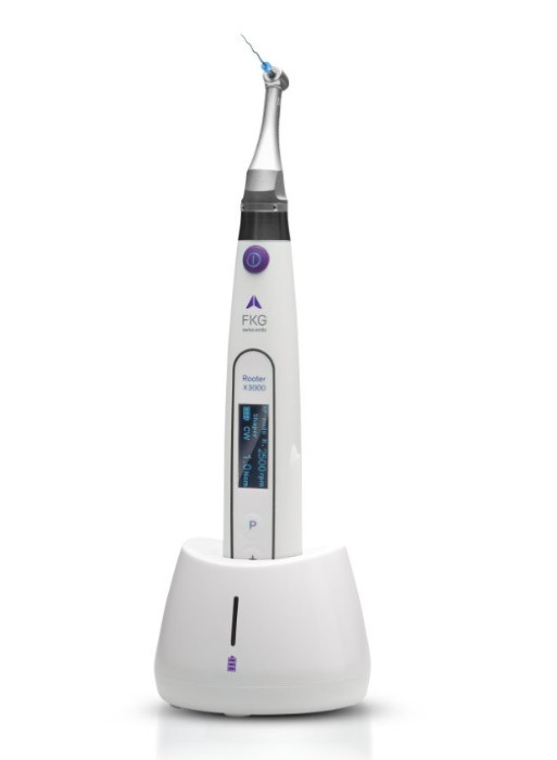 Micromotore endodontico cordless con rilevatore apicale integrato. Centro di gravità frontale per una ottimale maneggevolezza. Velocità massima 3300 giri/min, possibilità di scelta tra più di 60 velocità , funzioni apicali multiple, 10 memorie programmabili per le modalità EAL, CW, CCW, REC, ATR. Display regolabile per destrorsi o mancini, funzione auto start/stop. Angoli reciprocanti regolabili, testina super-mini e gambo contrangolo sottile con rotazione 360°. Rapporto 4.7:1. Motore brushless (senza spazzole), batteria al litio di lunga durata (2000 mAh).