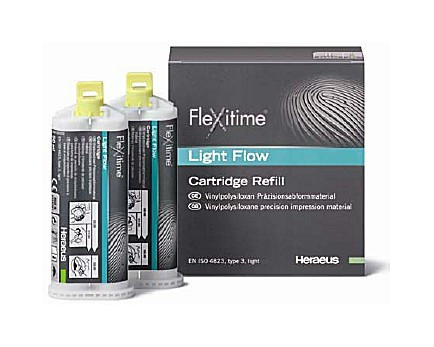 Materiale per impronta VPS che per mette di ottenere impronte accurate grazie all'ottima riproduzione del dettaglio e alle caratteristiche di scorrevolezza e stabilità dimensio nale. Presenta: ottima idrocompati"bilità con il Polietere; eccellent iperformance nei solchi; elevata re sistenza che previene lacerazioni e distorsioni delle parti più sottili "dell'impronta; particolare tissotr opia che previene scivolamenti del materiale nella bocca del paziente. Per tecnica simultanea e doppia im pronta, da utilizzare con dispenser manuale. Viscosità Light-flow, pre sa regular. La confezione contiene 2 cartucce x 50 ml + 12 puntali miscelatori gialli.