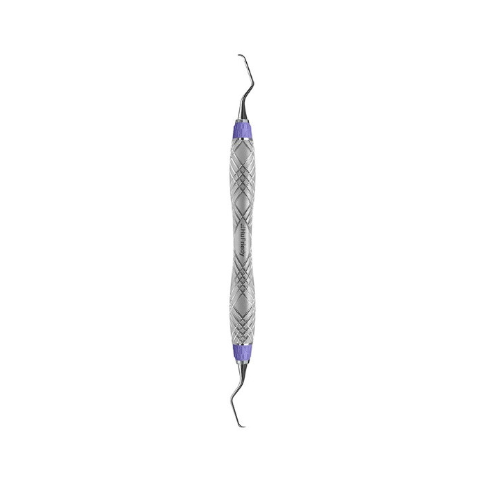 Curette MiniFive, autoclavabile. Con impugnatura ergonomica Harmony, progettata con la tecnologia True Fit. Strumento Everedge che consente di ridurre la forza di presa fino al 65% e la quantità di pressione applicata sul dente fino al 37%.