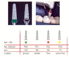 Lima diamantata oscillante per la rifinitura e bisellatura di bordi marginali di cavità per conservati va e di spalle di monconi. Dotata di leggera curvatura assiale , punta arrotondata e diamantatura solo in punta. 40 micron, codifica colore rosso. Confezione da 3 pz.