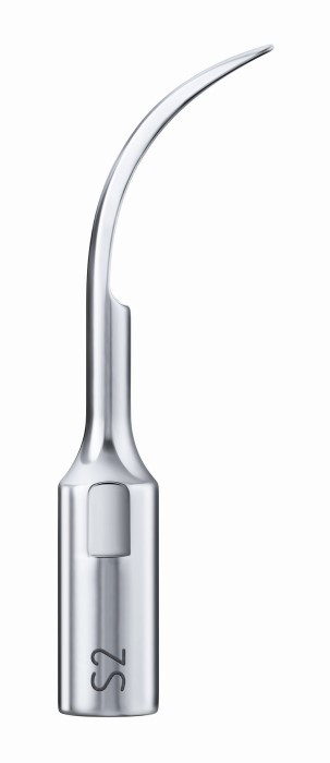 Nuova punta in nitruro di titanio a forma di scaler, con sezione triangolare, lievemente arrotondata nella parte dorsale, risulta particolarmente efficace negli spazi inter prossimali e nei settori posteriori