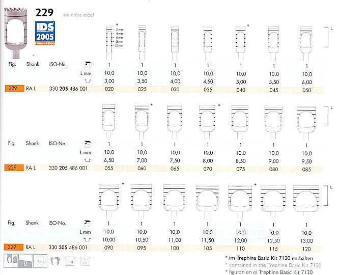 Fresa carotatrice inox per prelievi ossei. Programma Standard.