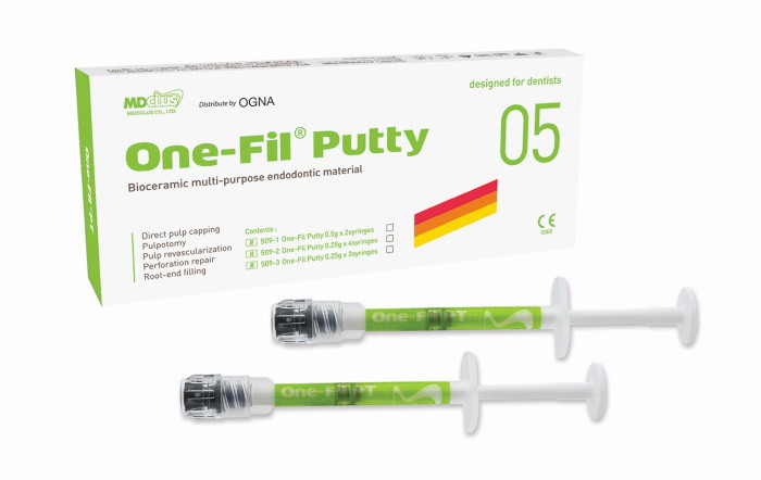 Materiale per l'otturazione permanente del canale radicolare composto da alluminato tricalcico premiscelato e progettato per essere facilmente utilizzato. È indurito dall'umidità, ha un'eccellente adesione e ottima lavorabilità. Elevata attività antibatterica, radiopacità e operabilità. pH: 13,2. Tempo di presa: 30 minuti nel canale radicolare. La confezione contiene 4siringhe da 0,25 gr.