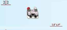 Attacco gemellare in metallo con Slot verticale, ONE - tecnica Roth per laterale superiore sinistro base 3,2mm, Slot .018, Torque 12°, Angolazione 5°. Confezione da 10pezzi.