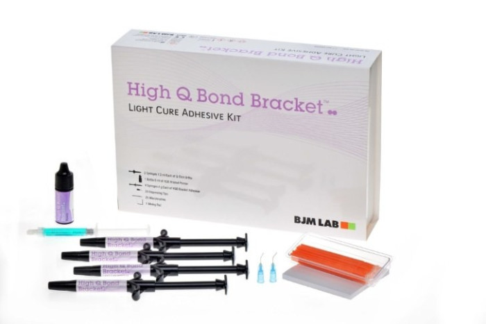 Sistema adesivo monocomponente, fotopolimerizzabile, a rilascio di fluoro per brackets in metallo e in ceramica. Il posizionamento definitivo del bracket deve essere effettuato prima che l'adesivo inizi a polimerizzare con la luce ambientale, circa 60 sec. Contiene il monomero 4-Meta per una adesione chimica forte al dente e alle superfici in metallo e in procella na. Confezione da 16 g: 4 siringhe di Resina Adesiva da 4 g cad., 1 Primer da 6 ml, 2 siringhe Q-Etch Ortho da 1,2 ml cad., 20 aghi appli catori ed accessori.