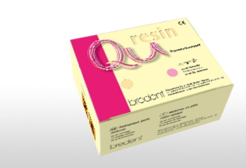 Qu-resin è una resina per riparazioni di protesi, autopolimerizzabile, ad indurimento rapido, a base di diacrilato indicata per un uso intra ed extraorale. Qu-resin viene fornita in doppia cartuccia, come materiale in pasta bicomponente (rapporto di miscelazione 1:1). Co"lore Dentina. La confezione contie -ne: 1 cartucca 50 ml; 1 Qu-connec "tor 10ml; 12 cannule da miscelazio -ne Gr. 1 blu."