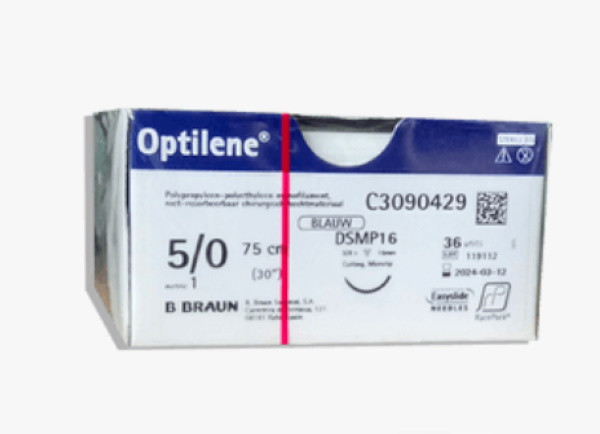 Optilene è una sutura sterile monofilamento non assorbibile composta da polipropilene e polietilene. Indicato per: chirurgia dentale, chirurgia vascolare, nella chirurgia plastica, nelle suture cutanee. Ago dorso tagliente con punta di precisione. 3/8 cerchio. Filo da 75cm. Colore blu per una migliore visibilità. Confezione da 36pz.