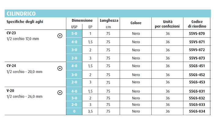 Sutura naturale in seta, intrecciata e rivestita, lunghezza filo 75cm colore nero. Confezione da 36.