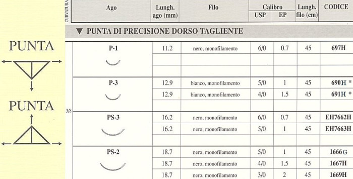 Sutura sintetica non assorbibile, monofilamento - Colore: nero, blù o incolore (bianco) - Materiale: po liammide 6 o poliammide 6.6L'elevata resistenza tensile e l'el asticità di questa sutura offrono ottime garanzie anche agli utilizza tori dei calibri più sottili. La struttura monofilamento conferis ce caratteristiche di assoluta atraumaticità e non capillarità.