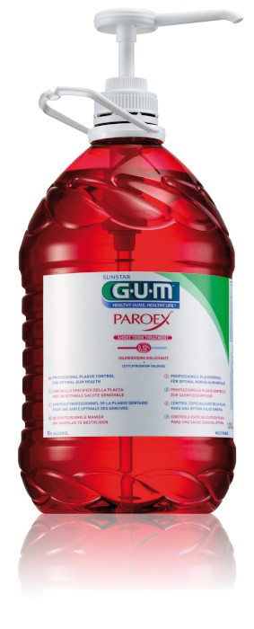 Collutorio alla clorexidina senza alcol. La formulazione senza alcol risulta particolarmente gradita: evita effetti irritanti sulle gengive e spiacevoli senzazioni di bruciore. La Clorexidina è l'antisettico più efficace contro la placca batterica. Il suo lento rilascio (sostantività) è da ritenersi proprietà fondamentale per una protezione più duratura. Il dosatore è da ordinare a parte:codice DT 10020977 PAROEX 0,12% BUTLER SOLO DOSATORE. Tanica da 5 litri, gusto menta fresca.