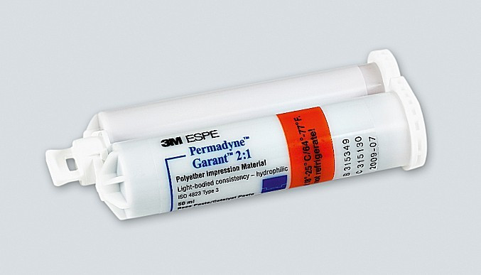 Materiale per impronta di precisio ne in polietere per l'applicazione della tecnica simultanea. Indicato per corone e ponti, inlay e onlay e impronte funzionali. Da utilizzare con dispenser manuale. Viscosità light, presa regular. La confezione contiene 4 cartucce x 50 ml + 20 puntali miscelatori bian chi.
