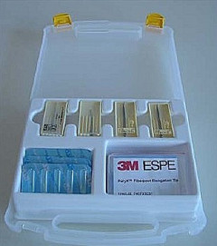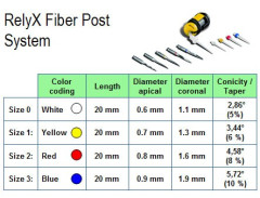 Perni in fibra di vetro traslucenti e radiopachi da utilizzare in abbinamento con il cemento composito au toadesivo Relyx Unicem Aplicap, dotati di codifica colore per un faci le abbinamento tra perno e fresa della misura corrispondente. Bliste rati singolarmente. La confezione contiene: 10 perni mi sura 3 (apicale 0,9mm, coronale 1,9mm) codifica colore blu.