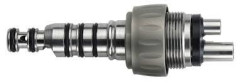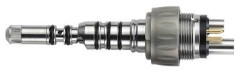 Turbina con corpo in acciaio e speciale rivestimento in PVP per una presa migliore e resistente. Testina Muni con meccanismo di anti-retrazione dell'aria e della funzione Quick Stop che permette alla turbina di fermarsi in meno di 3 secondi . Autoclavabile e Termodisinfettabile. Testina mini con attacco W&H con luce. Garanzia 24 mesi.
