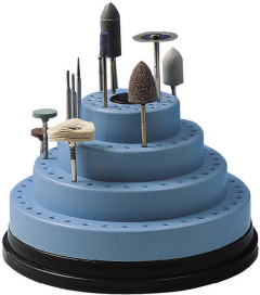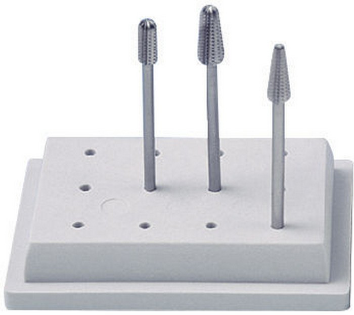 Sterilizzabile fino a 135°C, con ba se in plastica e coperchio trasp nte non sterilizzabile. Munito di 33 6 fori per frese HP Portafr