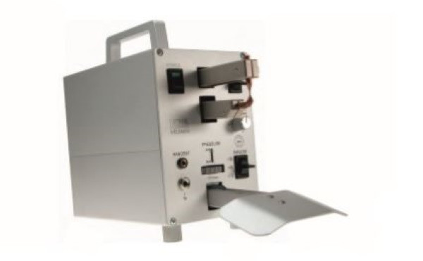 La puntatrice Weldman è un apparecchio compatto e potente che coniuga un sistema di controllo elettronico di recente progettazione e una meccanica di precisione. Attraverso il sistema di controllo elettronico, la forza di saldatura è infinitamente variabile e garantisce ottime prestazioni. Il funzionamento è facilitato dalla presenza di pochi interruttori e pulsanti disposti secondo parametri logici in posizione di facile accesso. Il pedale pneumatico per il controllo remoto "è parte dell'apparecchio. Specifi -che tecniche: PxAxL 290x170x105mm "Peso 4,3 kg; Voltaggio 230V 50Hz ;Potenza massima di impulso circ "2200 VA; Fusibile 3,15 A."