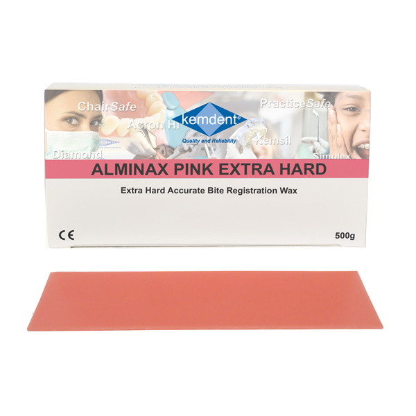 Cera per impronta. Si ammorbidisce in acqua calda a 45° punto di fusione a 60°. Confezione da 500gr in fogli Pink extra-hard wax.