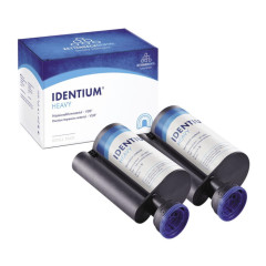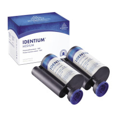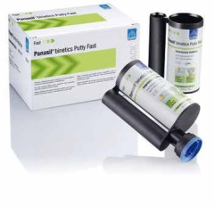 Silicone per addizione a base di vinilpolisilossano con idrofilia iniziale particolarmente elevata. La confezione contiene: 2 cartucce da 50ml Versione Regular (media viscosità), 6 puntali di miscelazione bianchi.
