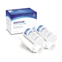 Materiale a base di vinilpolisilos sano, silicone per addizione, per impronte di precisione con differen ti gradi di durezza finale e caratteristiche di polimerizzazione di verse. Indicato per la tecnica simultanea (sandwich). La confezio ne contine: 1 cartuccia da 450ml di massa catalizzatore, 1 cartuccia da 450ml di massa base, 2 cucchiai dosaggio.