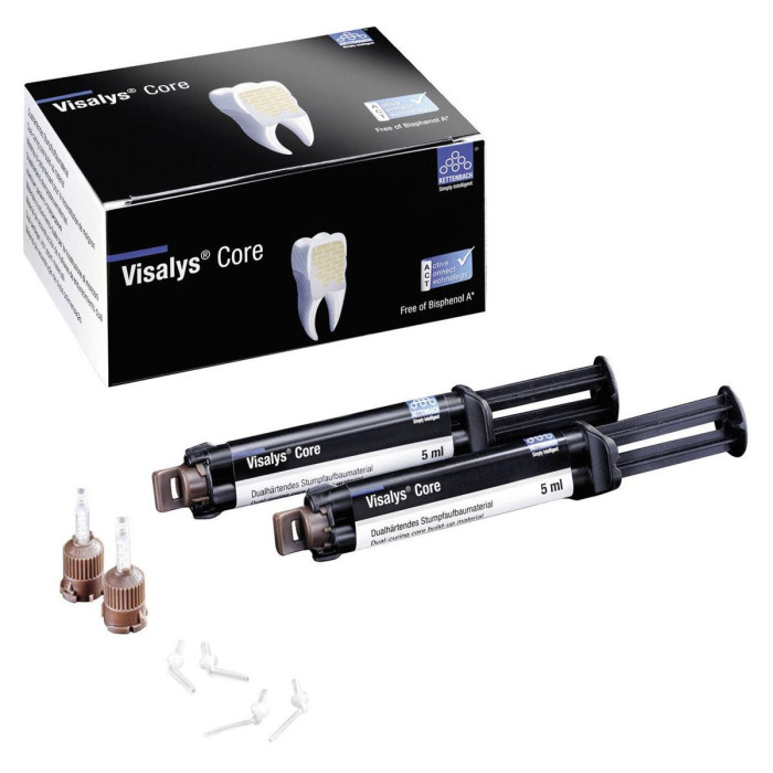 Materiale per la ricostruzione del moncone, per una sicura adesione con la maggior parte degli adesivi mono e polifasici. Consente quindi l'adesione anche tra materiale per la ricostruzione del moncone a poli merizzazione duale e adesivi univer sali. Presenta un basso sviluppo di calore, quindi protegge la polpa . La confezione contiene: 2 siringhe doppie da 5ml, 20 puntali di mi scelazione, 10 puntali intraorali, 10 puntali Endo, 2 pestelli. Colore Dentina.