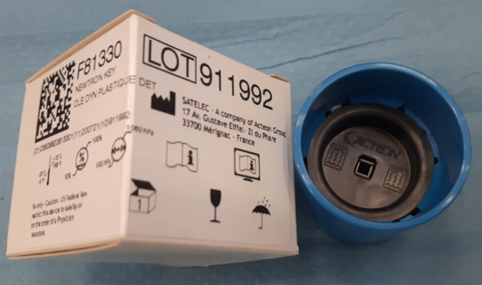 Chiavetta dinamometrica in plastica autoclavabile colore blu.