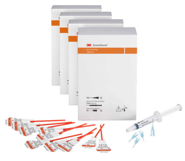 L'adesivo 3M Scotchbond Universal Plus è il primo adesivo universale radiopaco all-in-one per tutte le procedure di bonding dirette e indirette. Insieme al cemento in resina 3M Relyx Universal crea un sistema completo: se usati insieme, l'adesivo viene polimerizzato dal cemento e non è necessaria la fotopolimerizzazione. La confezione contiene: 400 L-Pop, 1 siringa da 3ml di Scotchbond Universal Etchant , 25 puntali per l'erogazione del mordenzante, guide tecniche, istruzioni per l'uso.