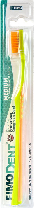Spazzolino con setole UltraX di ultima generazione: morbide, flessibili, smussate in punta e con basso assorbimento di umidità. Estremamente efficace nella rimozione della placca mantenendo allo stesso tempo una sensazionale delicatezza nei confronti di gengive e smalto. Testina compatta e smussata, il manico incoraggia il corretto spazzolamento ed ha inserti in gomma utili e discreti. Cappuccio coprisetole salva igiene. La confezione contiene 1 spazzolino medio verde arancione.