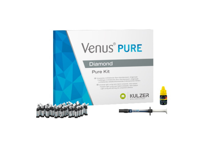 Composito per procedure restaurative quotidiane per anteriori e posteriori in stratificazione monocromatica. Consente una facile manipolazione e scolpibilità utilizzando un unico colore anche sugli anteriori e senza bisogno di un opaco aggiuntivo. La confezione contiene "1 confezione Venus Diamond da 20x0.25g PLT colori LIGHT + MEDIUM;"1 siringa Venus Bulk Flow ONE da 2gr; 1 confezione iBOND Universal d "2ml; 5 Flow Cannule, Translatio ncard; Pictorial card iBOND Univer "sal; istuzioni d'uso."