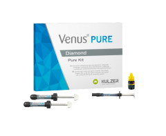 Composito per procedure restaurative quotidiane per anteriori e posteriori in stratificazione monocromatica. Consente una facile manipolazione e scolpibilità utilizzando un unico colore anche sugli anteriori e senza bisogno di un opaco aggiuntivo. La confezione contiene "1 confezione Venus Pure da 20 x 0.2g PLT colori LIGHT + MEDIUM; 1 sir "ringa Venus Bulk Flow ONE da 2gr;1confezione iBOND Universal da 2ml "5 Flow Cannule, Translation card ;Pictorial card iBOND Universal istuzioni d'uso.