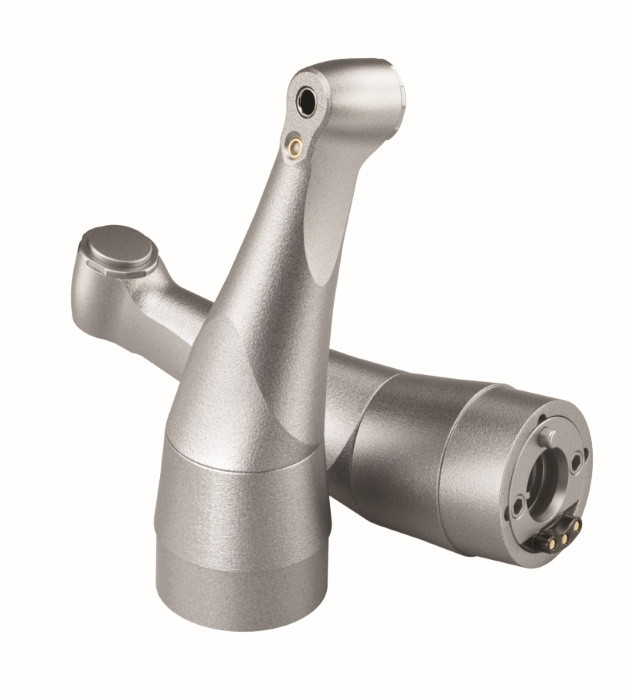 Contrangolo mini 5:1 con LED integrato, rivestimento del manipolo in acciaio regolabile a 360°.